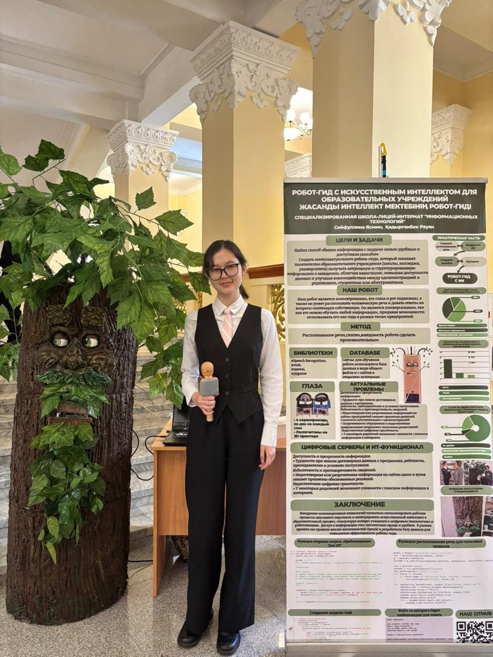 В нынешнюю же поездку на соревнования RoboCup Asia-Pacific они уже по полной использовали ИИ в своём проекте. Но Ясмин Сейфуллина совместно со школьной командой ІТ-лицея INSPIRO полностью переработали конструкцию дерева: была обновлена электроника, добавлено распознавание речи, синтез речи, база данных и улучшен внешний вид. В таком виде проект был представлен ранее на Республиканском конкурсе научных проектов в Актобе и занял второе место в секции «Информатика».