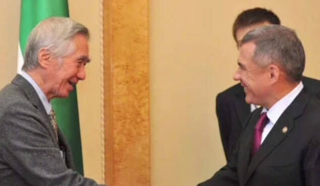 Галимова прикрепила к посту фотографию, сделанную в 2012 году, когда архитектор представлял свой проект Раису Татарстана Рустаму Минниханову.