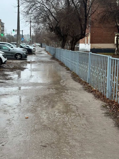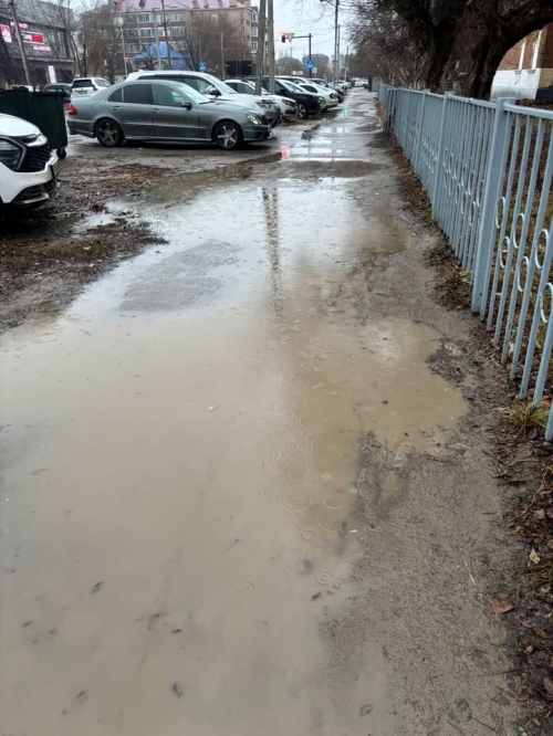 Просим сделать тротуар по ул. Жургенова возле школы №2. Невозможно идти в школу. Ребёнок грязный. Что в школу заходит, что домой идёт, спотыкается. А некоторые и падают.