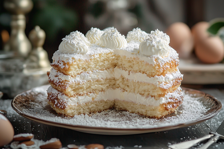 Рецепт: в миске смешайте яйца и сахар, взбейте до пены. Добавьте кефир, масло, соль, разрыхлитель и кокосовую стружку. Постепенно всыпьте муку, замесите жидкое тесто. Вылейте в форму (20–22 см), застеленную пергаментом. Выпекайте в разогретой до 180 °C духовке 35–40 минут. Бисквит остудите, разрежьте на 3 коржа.