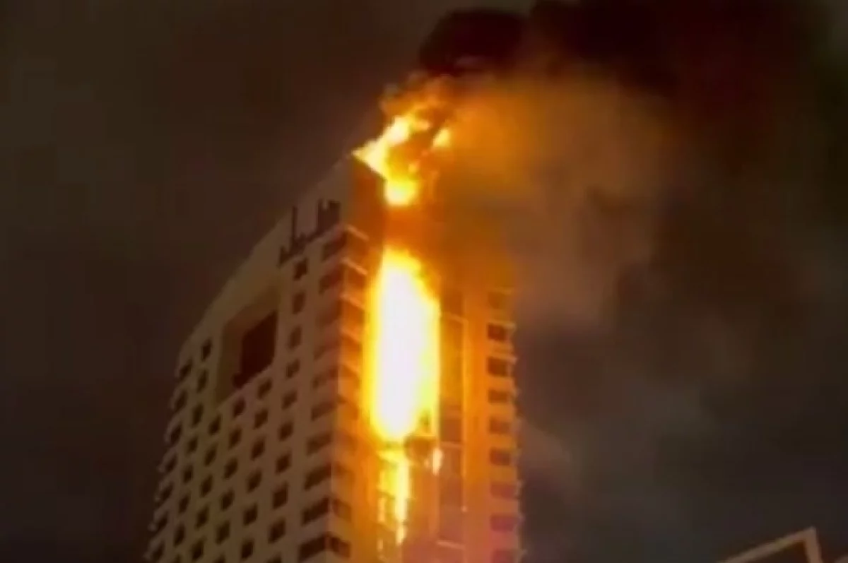 Иранский телеканал показал кадры с места случившегося. На них запечатлено, что огонь охватил верхние этажи небоскрёба.